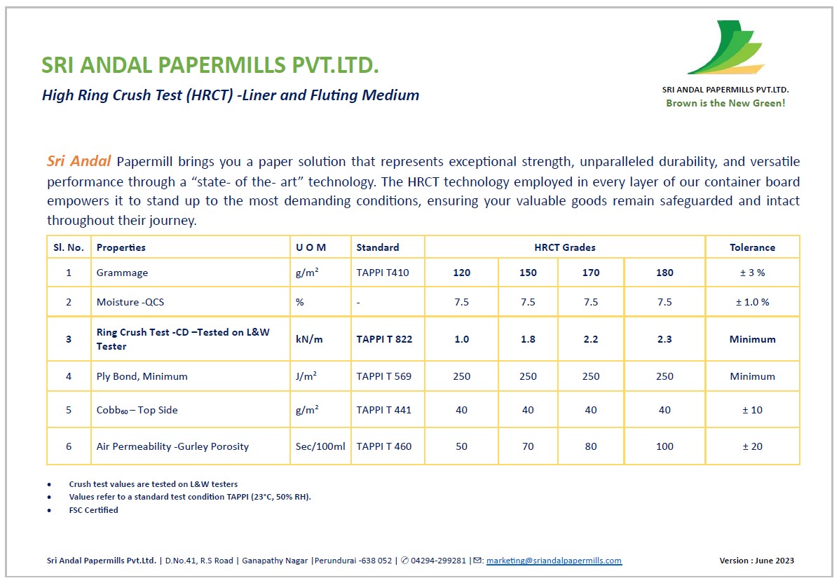 Upgrade your packaging game and productivity . Give your products the protection they deserve with the SRI ANDAL versatile container board series based on Burst ( Mullen ) RCT and SCT.